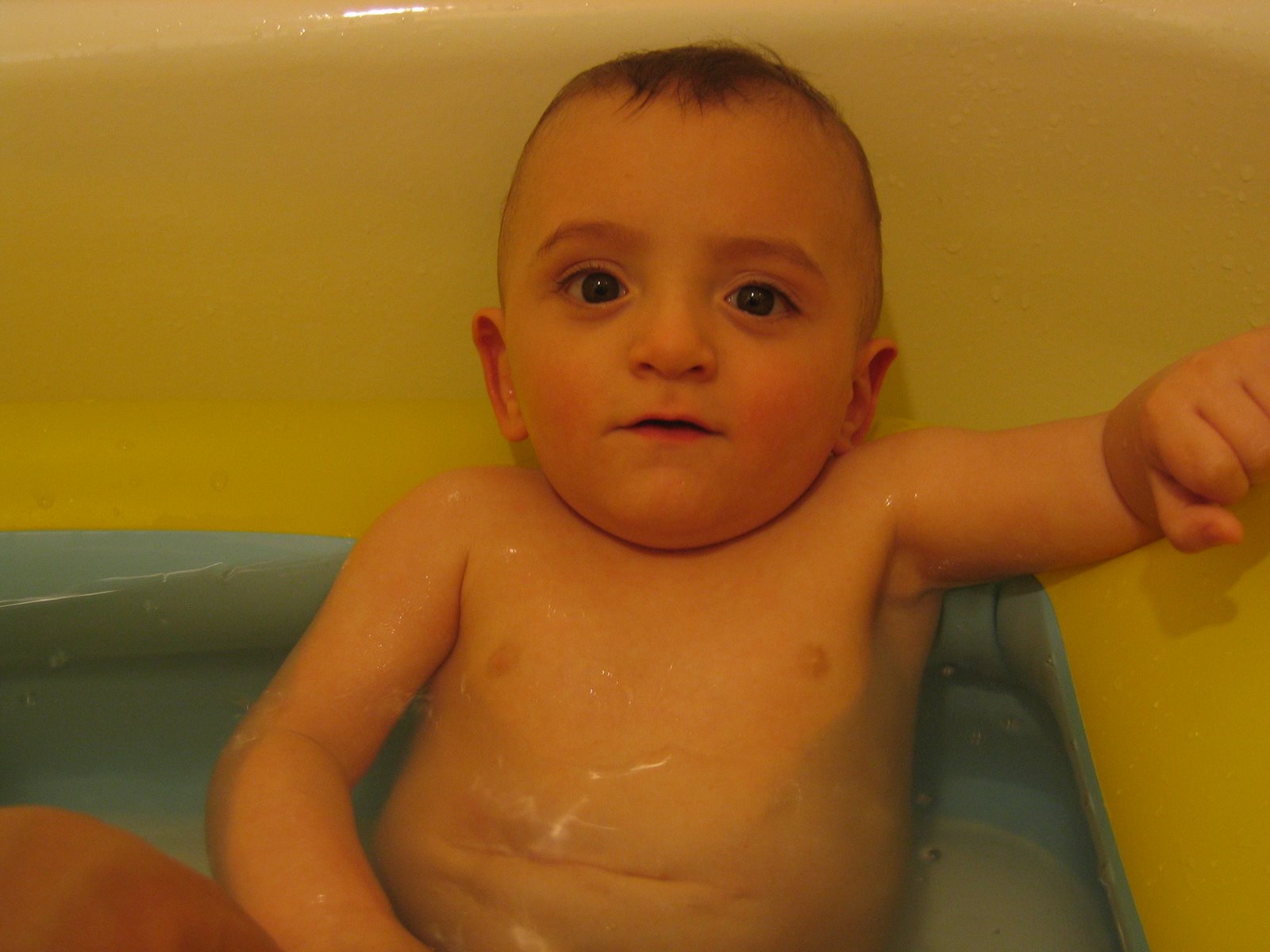 Shari is going to post an entry tonight as I’m too tired and busy with other things – but I couldn’t resist posting this picture as he looks so cute – saoking in the tub after a long hard day at the clinic – if you look close at his tummy you can see his surgery war wound from when he weighed only 1lb 9oz. He’s just a bit heavier today 🙂 He’s gonna love me for these type of pictures in future