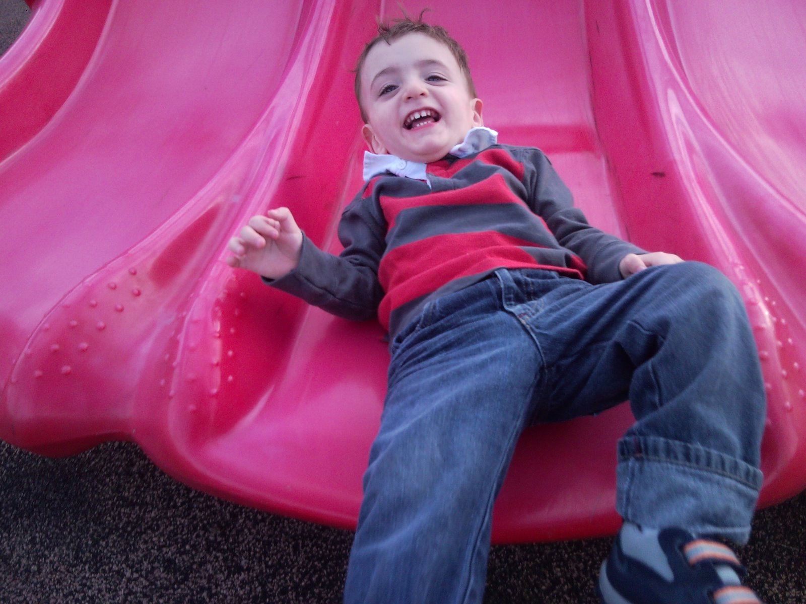 It was an unseasonable 73 degrees in Kansas City on Saturday. So we took Josiah out to Leawood Park – he LOVES slides – this is an action shot as he is sliding down one of the big slides. Later this month he will celebrate his second birthday – yes, it’s been nearly two years since a little 1lb 12oz baby with a bunch of medical uncertainties entered the world – and he is happy and growing and taller than most little boys his age. Loving life, trucks, fire engines and Richard Scarry books.